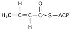 Crotonyl-ACP, an Acyl-Carrier-Protein (ACP) gebundene Crotonsäure ( vgl. Abb. ); Zwischenprodukt bei der Fettsäuresynthese (Fettsäuren).