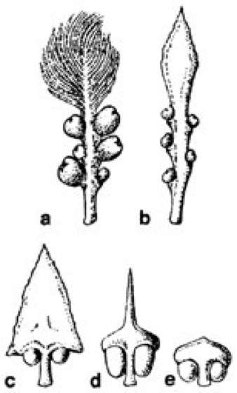 Die Megasporophylle der Cycadales lassen eine fortschreitende Reduktion des Blattcharakters erkennen.