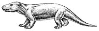 Cynognathus m (von *cyno –, griech. gnathos = Kiefer], (Seeley 1895), ausgestorbenes synapsides (Synapsida) Reptil mit säugetierähnlichen Merkmalen ( vgl. Abb. ) aus der Reptilgroßgruppe der Therapsida; Schädel bis 40 cm lang, mit starkem caniniformem, an den Eckzahn von Hunden erinnerndem Zahn; Zähne mit gekerbten Schneidekanten, die auf fleischfressende Ernährung hinweisen; Länge bis 2,5 m; Vorkommen in der mittleren Trias von Südafrika und Südamerika. Mosaikevolution.