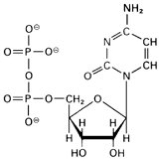 Cytidindiphosphat s, Abk. CDP, eine energiereiche Verbindung, die sich vom Cytidin durch Veresterung mit Pyrophosphat am 5´-C-Atom ableitet ( vgl. Abb. ); gehört zur Klasse der Nucleosid-5´-diphosphate. Cytidindiphosphat bildet sich in der Zelle durch Phosphorylierung von Cytidinmonophosphat und kann durch weitere Phosphorylierung in Cytidintriphosphat (CTP) umgewandelt werden.