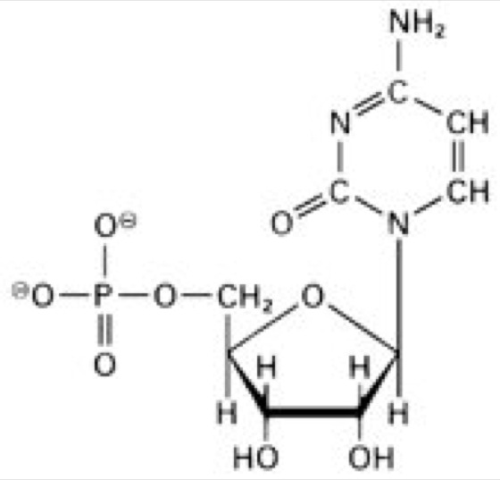 Cytidinmonophosphate, Salze der Cytidylsäuren. Zu unterscheiden sind Cytidin-2´phosphat, Cytidin-3´-phosphat und Cytidin-5´-phosphat (Abk. CMP;vgl. Abb. ). Sie gehören zur Klasse der Nucleosidmonophosphate und sind analog aufgebaut wie die entsprechenden Adenosinmonophosphate, jedoch mit der Base Cytosin statt Adenin. Als Mononucleotid-Reste sind Cytidinmonophosphate Hauptbestandteile von Ribonucleinsäuren (RNA).