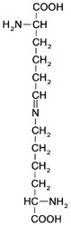 Dehydrolysinonorleucins, Dipeptid ( vgl. Abb. ), das die Verbindung zweier Tropokollagen-Polypeptidketten (Kollagen) über zwei Lysin-Reste (Lysin) vermittelt.