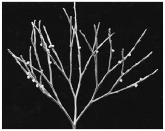 Dichotome Verzweigung bei einer primitiven Farnpflanze