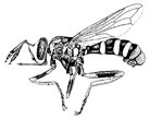 Dickkopffliegen, Conopidae, Familie der Fliegen mit weltweit ca. 800, in Mitteleuropa ca. 50 Arten; kleine bis mittelgroße, oft bunt oder wespenähnlich gefärbte Insekten, die oft mit Hautflüglern verwechselt werden. Typisch ist der dicke, aufgeblasen wirkende Kopf; wespentaillenähnliche Einschnürung am Hinterleib, der etwas nach unten eingerollt ist. Die Imagines der Dickkopffliegen leben von Blütennektar. Weibchen lauern oft in der Nähe von Bienen- und Wespennestern, um sich schließlich auf dem Rücken eines Wirtes festzuklammern. Sie schieben dann ein Ei zwischen die Intersegmentalhaut des Hinterleibs; die Larven dringen in deren Hinterleib ein und parasitieren in ihm. Die Puppe überwintert in der leergefressenen Hülle des Wirtstieres. Bei uns häufiger sind die wespenähnlich gezeichneten Conops-Arten ( vgl. Abb. ), die sich in den Körpern von Hummeln oder solitären Bienen (Osmia) entwickeln.