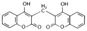 Dicumarols, Melitoxin, 3,3´-Methylenbis-4-hydroxy-cumarin, ein dimeres Cumarin ( vgl. Abb. ), das erstmals aus durch Gärung verdorbenem Süßklee (Alfalfa, Luzerne, Medicago sativa;Schneckenklee) isoliert wurde, wo es aus Cumarin gebildet wird. Kompetitiver Inhibitor des Vitamins K (Phyllochinon); verhindert die Bildung von aktivem Prothrombin (Thrombin), beeinträchtigt dadurch die Blutgerinnung. Aufgrund dieser Eigenschaft wird Dicumarol medizinisch als Antikoagulans gegen Thrombose (Thromboseprophylaxe) eingesetzt. Atmungskette.