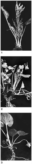 1 Die vegetativen Triebe vom Meerrettich haben ganzrandige, die blühenden zerschlitzte Blätter; 2 beim Märzveilchen treten zuerst normale, unfruchtbare, später 3 dann kleistogame, fruchtbare Blüten auf.