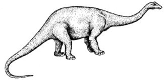 Diplodocusm [von *diplo –, griech. dokos = Balken], (Marsh 1878), Donnerechse, mit bis zu 27 m Gesamtlänge, einer Rückenhöhe von ca. 5 m und einem geschätzten Gewicht von ca. 10,5 t einer der größten Vertreter der ausgestorbenen quadrupeden herbivoren Sauropoden (Dinosaurier), aus dem oberen Jura von Nordamerika und (?)Deutschland; sehr langer Hals und Schwanz ( vgl. Abb. ), die zusammen etwa die Hälfte der Körperlänge ausmachen; hintere Rückenwirbel mit gegabelten Dornfortsätzen für den Ansatz von Muskulatur und Ligamenten des langen peitschenförmigen Schwanzes, der wahrscheinlich zur Verteidigung benutzt wurde; paarige Nasenöffnungen hoch oben am Schädel zwischen den Augen gelegen; stiftförmige Zähne, nur am vorderen Rand von Ober- und Unterkiefer, die dem Ergreifen und Abreißen pflanzlicher Nahrung, auch von hohen Bäumen, dienten. Aufschluß der Nahrung im Vor- und Hauptmagen durch Gastrolithen; Gliedmaßen säulenförmig, aber schlank. Von Diplodocus sind auch Jungtiere bekannt und Fußspuren, z. B. aus der Unterkreide von Norddeutschland.