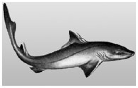 Dornhaie, 1)Squalidae, Familie meist nur bis 1 m langer, schlanker, in allen Meeren der gemäßigten Breiten lebender Haie mit 2 Gattungen und 10 Arten. Sie haben am Vorderrand der beiden Rückenflossen je einen scharfen, eine Giftdrüse tragenden Dornstachel, jederseits 5 Kiemenschlitze und scharfe Zähne; die Afterflosse fehlt; viele sind lebendgebärend (Ovoviviparie). Bekannteste Art ist der etwa 1 m lange, vorwiegend Heringe und Dorsche jagende Gemeine Dornhai (Squalus acanthias;vgl. Abb. ), der vor allem in den Küstengebieten des nördlichen Atlantiks und im Mittelmeer vorkommt und riesige Schwärme (bis zu 1000 Tiere) bildet; die jeweils 4–8, ca. 22 cm langen Jungen werden nach einer Tragzeit von 18–22 Monaten lebend (ovovivipar; Ovoviviparie) geboren; er ist in Europa wirtschaftlich bedeutend und kommt geliert als "Seeaal" oder in Form geräucherter Bauchlappen als "Schillerlocken" in den Handel (Inhaltsstoffe vgl. Tab. ). Früher zählten auch die 10 Arten der Gattung Etmopterus zu dieser Familie, die neuerdings den Unechten Dornhaien (s. u.) zugeordnet werden. Es sind meist kleine, unter 60 cm lange Tiefseebewohner mit Leuchtorganen; so lebt der ca. 45 cm lange Schwarze Dornhai oder Samtbauchhai (Etmopterus spinax) bevorzugt in Tiefen zwischen 220 und 700 m am Außenrand des nördlichen, ostatlantischen Festlandsockels und im westlichen Mittelmeer; in der Bauchhaut hat er zahlreiche kleine Leuchtorgane. 2) Die Unechten Dornhaie (Dalatiidae) bilden eine eigene Familie, zu der nach neuerer Systematik zahlreiche Gattungen gestellt worden sind, die zuvor bei den Squalidae (s. o.) aufgeführt waren. Sie umfaßt nunmehr 18 Gattungen und 49 Arten. Auch ihnen fehlt die Afterflosse, aber oft sind keine Dornstacheln vor den Rückenflossen vorhanden; die meisten Arten haben vor allem auf der Bauchseite punktförmige Leuchtorgane. Neben Riesen, wie dem meist 3–4 m, aber bis 7 m langen, nordatlantischen, vorwiegend in Tiefen zwischen 200 und 600 m lebenden Grönlandhai oder Eishai (Somniosus microcephalus), gehören hierzu die kleinsten Haie, die Zwerghaie, wie der bis 26 cm lange, leuchtfähige, tagsüber in der pazifischen Tiefsee unter 2000 m lebende (mit einem nachgewiesenen Fang in 9938 m Tiefe) und nachts an die Oberfläche auftauchende Euprotomicrus bispinatus und der nur 15–23 cm lange, tiefschwarze Squaliolus laticaudus mit weißen Flossen und großen, runden Augen, der weltweit in warmen Meeren in Tiefen bis 200 m verbreitet ist. Der wirtschaftlich bedeutende Eishai hat eine extrem große Leber, die 15–20% des Körpergewichts ausmacht und als Energiespeicher dient. Im Mittelmeer kommt der bis 1 m lange Lemargo (Somniosus rostratus) vor, der ausgewachsen Leuchtorgane entlang der Seitenlinie und auf dem Vorderrücken besitzt. In allen Meeren meist in Tiefen um 500 m ist der bis 1,8 m lange, dunkelbraune, lebendgebärende Schokoladenhai (Dalatias licha) verbreitet. Besonders helles, grünliches Licht strahlt der bis 50 cm lange, zigarrenförmige, in tropischen Ozeanen heimische Leuchthai (Isistius brasiliensis) aus; er ernährt sich außer von Krebsen und Tintenfischen auch von Fleischstücken, die er aus großen Tieren, wie Thunfischen, Delphinen, Robben und Walen, herausreißt; dabei saugt er sich mit seinen wulstigen Lippen fest, gräbt seine sägeartigen Unterkieferzähne in die Beutetiere und schneidet durch eine Kopfdrehung ein kegelförmiges Stück Fleisch heraus. Zu den Unechten Dornhaien gehört auch die Gattung Meersauhaie(Oxynotus).