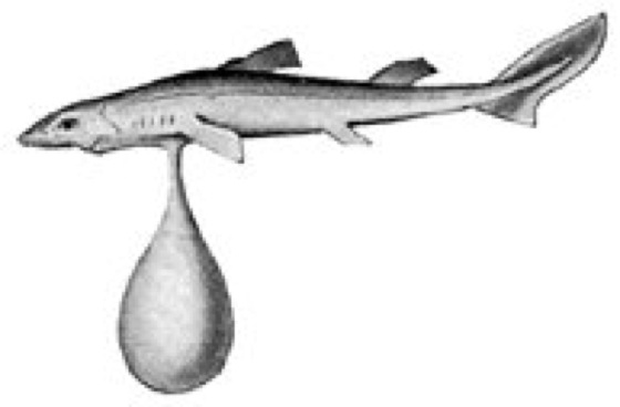 Dottersack beim jungen Haifisch; verschwindet nach Ablauf der Embryonalzeit; nur manchmal bleibt nach der Geburt ein kleiner, blindsackähnlicher Anhang.
