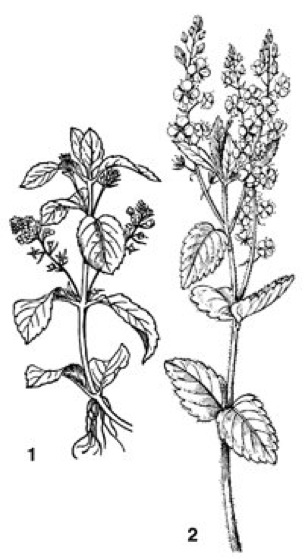 1 Bachbunge (Veronica beccabunga), 2 Gamander-Ehrenpreis (Veronica chamaedrys)