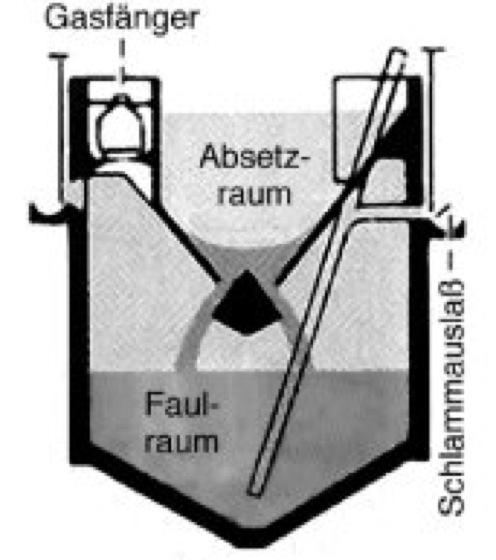 Emscherbrunnen [benannt nach dem Fluß Emscher], Imhoff-Tank,Absetzbecken zur mechanischen Abwasserreinigung und Schlammausfaulung ( vgl. Abb. ). Kläranlage.