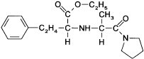 Enalaprils, ein Angiotensin-Converting-Enzyme-Hemmer (ACE-Hemmer). Aktiv ist der Metabolit Enalaprildisäure, der ein Analogon der C-terminalen Endsequenz der Peptidkette des Angiotensin I (Angiotensin) ist und so das ACE kompetitiv hemmt. Außerdem hemmt Enalapril ( vgl. Abb. ) den Abbau des VasodilatatorsBradykinin zu inaktiven Peptiden. Beide Wirkungen ermöglichen den Einsatz von Enalapril als Antihypertensivum.
