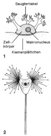 1 Dendrocometes paradoxus,2 Acineta tuberosa