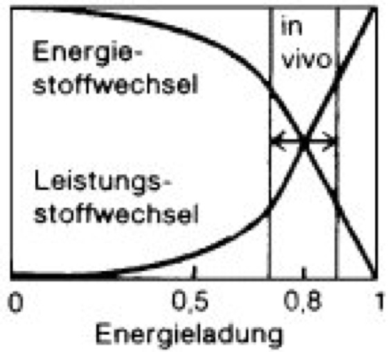 Geschwindigkeitszunahme bzw. -abnahme von enzymkatalysierten Reaktionen aus dem Katabolismus und Anabolismus in Abhängigkeit von der Energieladung. Empfindlichste Regelung im – in vivo vorhandenen – Bereich der halbmaximalen Reaktionsgeschwindigkeit.