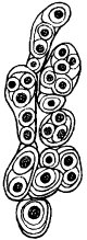Entophysalidaceae [von *ento- , griech. physalis = Blase], Familie der Chroococcales,Cyanobakterien, deren meist rundliche oder ellipsoide Zellen fadenartig angeordnet sind ( vgl. Abb. ), von Schleimhüllen (Scheiden) umgeben; sie bilden krustenförmige Lager in radial angeordneten Reihen. Entophysalis granulosa wächst in braunen Streifen an Felsen ca. 20 cm über und unter der Wasserlinie. Im Meer kommt Entophysalis deustaendolithisch in Kalkfelsen vor und bildet schwarze Lager auf den Küstenfelsen im Flutbereich. Möglicherweise müssen die Vertreter der Entophysalidaceae der Gattung Gloeocapsa zugeordnet werden.