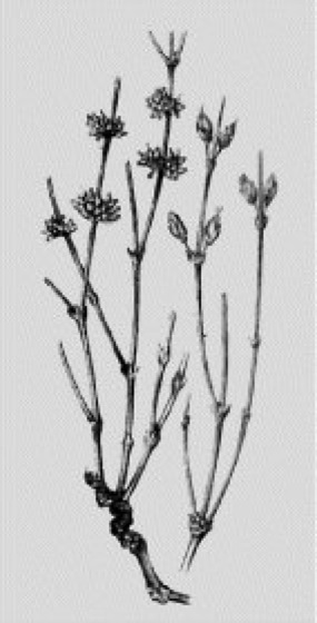 Blühende Zweige einer ♂ (links) und einer ♀ (rechts) Pflanze (Ephedra distachya)