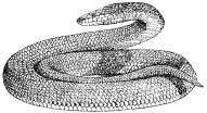 Erdschlangen, Flachkopfschlangen, Xenopeltidae, aus 2 Arten bestehende Familieder Schlangen, in Südostasien beheimatet; mit bezahntem Zwischenkiefer und Skelettresten des Beckens als urtümlichen Merkmalen. Die von Südchina bis Celebes verbreitete, ca. 1 m lange Regenbogenerdschlange (Xenopeltis unicolor;vgl. Abb. ) hat schillernde braune Rückenschuppen und ernährt sich von kleinen Nagetieren und Schlangen sowie Fröschen; zittert bei Erregung kräftig mit dem kurzen Schwanz, hat aber keine Rassel; sie gräbt sich oft etwas ein.