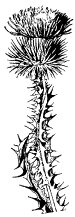 Eselsdistel, Onopordum, im Mittelmeerraum bis Persien heimische Gattung der Korbblütler ( vgl. Abb. ) mit etwa 40 Arten. Vereinzelt in Mitteleuropa zu finden ist Onopordum acanthium, eine 1–2jährige, bis 150 cm hohe Pflanze mit breit dornig geflügeltem, weit verzweigtem Stengel und länglichen, grob buchtig gelappten, dornigen Blättern. Die kugeligen Blütenköpfe sind bis 6 cm breit und bestehen aus purpurnen Röhrenblüten und dornig endenden Hüllblättern. Von Juni bis September blühend, wächst die Eselsdistel in sonnigen Unkrautgesellschaften von Trocken- und Warmgebieten. Die gelegentlich auch als Zierpflanze kultivierte Pflanze ist in Deutschland bestandsgefährdet.