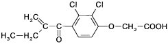 Etacrynsäure, stark wirksames Diuretikum ( ä vgl. Abb. ), das in der Henleschen Schleife die Na+-Resorption hemmt, die K+-, NH4+ und Cl-Ausscheidung hingegen fördert, wodurch es zu einer hypochlorämischen Alkalose kommen kann. Etacrynsäure wirkt auch bei stark eingeschränkter glomerulärer Filtration diuretisch.