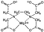 Komplex zwischen Mg2+ und Ethylendiamintetraacetat. Die Säureform von Ethylendiamintetraacetat (Ethylendiamintetraessigsäure) heißt auch Edetinsäure.