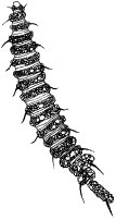 Desmoscolex, 0,2–0,3 mm lang, freilebend; Ansicht von der Seite. Die auf der Cuticula haftenden Fremdkörper betonen die für Fadenwürmer völlig untypische Ringelung.