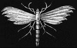 Federmotten, Federgeistchen, Pterophoridae, mit den Zünslern verwandte Familie der Schmetterlinge; ca. 1000 Arten, einheimisch über 50 Vertreter. Charakteristisch und ähnlich den Orneodidae sind die zerschnitzten Flügel ( vgl. Abb. ), Vorderflügel meist in 2, Hinterflügel in 3 federartige Lappen aufgeteilt; in Ruhe werden die Hinterflügel fächerartig unter die waagerecht abgespreizten Vorderflügel verborgen und die langen und bedornten Hinterbeine an das Abdomen angelegt bzw. darüber gekreuzt, was eine typische schnakenartige Erscheinung vortäuscht. Sie fliegen langsam schwebend in der Dämmerung oder nachts; Larven plump und behaart, Puppe am Cremaster angeheftet oder in Gespinst meist an der Futterpflanze. Beispiel: Pterophorus pentadactylus, seidig-schneeweiß, Spannweite um 28 mm, Raupe an Blättern und Blüten von Acker-Winden und Klee. Andere heimische Arten fressen u.a. an Rainfarn (Gillmeria ochrodactyla) oder an Rosenknospen (Cnemidophorus rhododactylus).