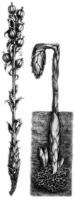 Fichtenspargel (Monotropa hypopitys), links Fruchtstand, rechts Blütensproß