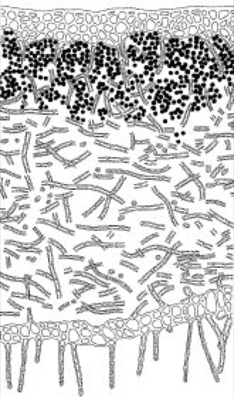 Oberrinde (mit gewebeartigem, zelligem Hyphengeflecht),