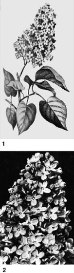 1 Gemeiner Flieder (Syringa vulgaris),2 Flieder-Traube