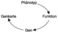 functional clonings, Bezeichnung für die Strategie zur Kartierung (Genkartierung) und Klonierung von Genen, ausgehend von der Funktion der Proteine. Die Strategie des functional cloning beginnt mit der Charakterisierung des Phänotyps bzw. der Erkrankung über die Analyse der Genfunktion zum Gen selbst und dessen Lokalisierung auf den Chromosomen ( vgl. Abb. ). Für die Klonierung des Gens bieten sich 3 Wege an. Zunächst kann versucht werden, ob ausgewählte cDNA-Fraktionen (cDNA) nach Transfektion geeigneter Zellsysteme die Funktion des gewünschten Gens erscheinen lassen. Dies kann z.B. für die Klonierung von Onkogenen über deren transformierende Eigenschaften (Transformation) gelingen. Geeignete Verkleinerungen von komplexen cDNA-Mischungen zu Einzelinjektion führen zu wenigen möglichen cDNA-Klonen. Eine zweite Möglichkeit besteht in der Isolierung, Reinigung und Sequenzierung des entsprechenden Proteins. Aus der oft nur unvollständigen Aminosäuresequenz lassen sich aufgrund des degenerierten genetischen Codes jedoch mehrere mögliche cDNA-Sequenzen ableiten. Degenerierte Oligonucleotide, korrespondierend zu konservierten Aminosäuresequenzen des Proteins, werden jetzt benutzt, um cDNA-Bibliotheken (Genbibliothek) nach dem vollständigen Klonen zu durchsuchen. Aus den gefundenen Exon-Sequenzen (Exon) läßt sich die komplette Aminosäuresequenz ableiten und das entsprechende Gen identifizieren. Eine weitere Möglichkeit besteht in der Suche nach dem gewünschten cDNA-Klon in einer Expressionsbibliothek mit einem spezifischen Antikörper. Nachfolgend kann mit den gewonnenen cDNA-Fragmenten aus genomischen Bibliotheken das vollständige Gen isoliert und sein Locus (Genort) auf dem Chromosom bestimmt werden.
