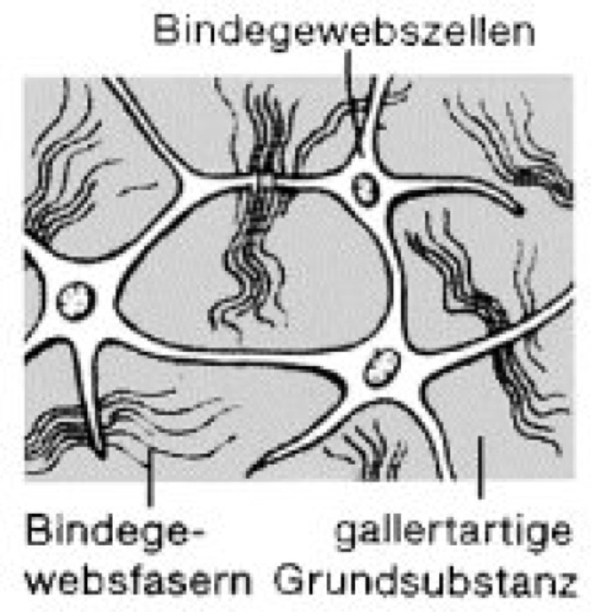 Gallertgewebe [von *gallert- ], mehr oder weniger zellarme tierische Gewebe, deren weite Interzellularräume von faserarmer gallertiger Grundsubstanz (Mucopolysaccharide) erfüllt sind ( vgl. Abb. ), wie sie z.B. in der Mesogloea der Hohltiere oder der „Whartonschen Sulz“ (Bindegewebe) im Nabelstrang (Nabelschnur) der Säuger vorliegen.
