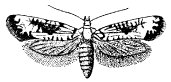 Gespinstmotten, Yponomeutidae, Hyponomeutidae, weltweit mit etwa 800 Arten verbreitete Familie der Schmetterlinge, in Mitteleuropa ca. 50 Vertreter. Auffällig sind die zuweilen massenhaft und dann schädlich auftretenden Larven, die gesellig in schleierartigen Gespinsten auf Gehölzen leben, auch die Verpuppung erfolgt gemeinsam darin. Die Larven befressen zunächst die Knospen, später auch die Blätter, andere Arten leben als Minierer. Die Falter sind klein (Spannweite bis 30 mm), Vorderflügel oft weiß mit dunklen Punktreihen, Hinterflügel grau, Flügel in Ruhe dachförmig gehalten. Beispiele: Apfelgespinstmotte (Yponomeuta malinelius): an Obstbäumen, vor allem Apfel und Birne; Falter im Juli, ca. 20 mm Spannweite; Pflaumengespinstmotte (Yponomeuta padellus): an Obstbäumen, vor allem Gattung Prunus; Falter im Juni/Juli, ca. 24 mm Spannweite; Eschenzwieselmotte (Prays fraxinella;vgl. Abb. ), an Esche, Falter im Juni/Juli, ca. 16 mm Spannweite; des weiteren die Kirschblütenmotte.