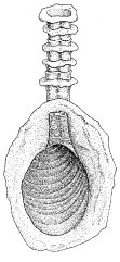 Gießkannenmuscheln, Clavagellidae, Familieder Unterordnung Anomalodesmacea, Meeresmuscheln, deren Schalenklappen nur bei Jungtieren wie bei anderen Muscheln gestaltet sind. Später werden die Klappen in eine Kalkröhre einbezogen, die von der Muschel abgeschieden und bewohnt wird ( ß vgl. Abb. ). Das Vorderende der Röhre kann mit einer siebartigen Platte verschlossen sein (Name!), die das Eindringen von Sand in die Wohnhöhle verhindert. Die Gießkannenmuscheln ( ß vgl. Tab. ) leben im Sandboden, in Kalkgestein oder Korallen, in denen sie mit Hilfe von Sekreten bohren. Sie sind Zwitter. Die Familie umfaßt etwa 10 Arten. Am bekanntesten sind die Gießkannenmuscheln i.e.S. (Penicillus vaginiferus, früher Brechites vaginiferum) aus dem Roten Meer; bis 16 cm lang.