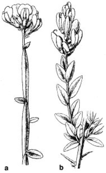 Abb. 1: a Flügel-Ginster (Genista sagittalis),b Deutscher Ginster (Genista germanica)