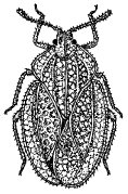 Gitterwanzen, Netzwanzen, Tingidae, Familie der Cimicomorpha (Unterordnung der Wanzen) mit weltweit ca. 1900, in Mitteleuropa ca. 75 Arten. Die Gitterwanzen sind ca. 2–8 mm groß, abgeflacht und besitzen auffällige gitter- und netzartige Strukturen auf Vorderbrust und Vorderflügeln (Name; vgl. Abb. ); der gekielte Halsschild hat an seinem Vorderrand oft eine kapuzenartige Bildung, die sog. Halsblase, unter der unter Umständen sogar der ganze Kopf verborgen sein kann; bei einigen kann der Halsschild auch nach hinten verlängert sein und das Schildchen mit einem Fortsatz verdecken. Alle Gitterwanzen ernähren sich von Pflanzensäften; sie sind dabei oft an bestimmte Pflanzen gebunden; bei Massenbefall können die Blätter absterben; schädlich wird gelegentlich die Birnblattwanze (Stephanitis pyri). Bei uns weit verbreitet und häufig ist die ca. 3,5 mm große Distel-Netzwanze (Tingis cardui). Vor wenigen Jahren aus Nordamerika eingeschleppt (Einschleppung) wurde die Platanen-Netzwanze (Corythucha ciliata), die bei uns inzwischen zumindest im süddeutschen Raum an Platanen schädlich wird.