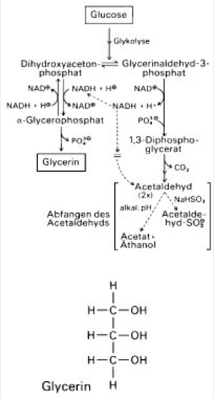 Glycerinbildung aus Glucose durch Abzweigung der Glykolyse bei Dihydroxyacetonphosphat