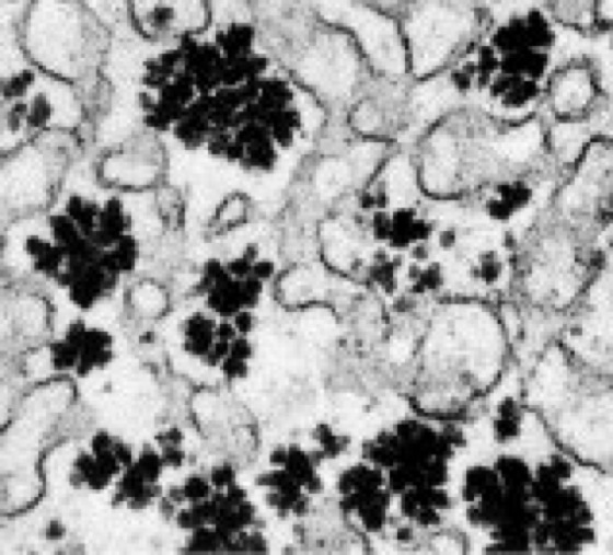 Abb. 3: Elektronenmikroskopische Aufnahme eines Ausschnitts einer Leberzelle mit Glykogengranula