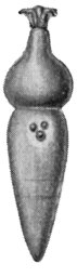 Corycella armata; oben der Protomerit mit Haftapparat, unten der Deutomerit mit Kern