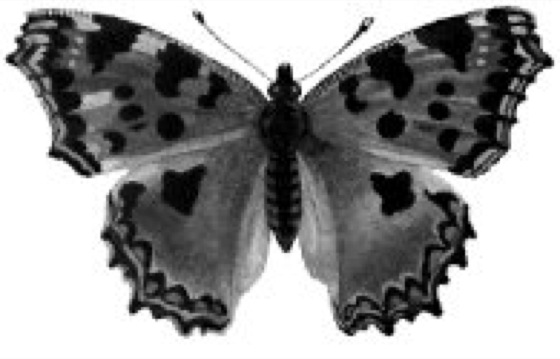 Großer Fuchs, Nymphalis polychloros, bekannter einheimischer Fleckenfalter mit paläarktischer Verbreitung (Paläarktis), der den ähnlichen und häufigeren Kleinen Fuchs an Größe übertrifft (Spannweite um 70 mm) und sich von diesem durch einen zusätzlichen schwarzen Fleck auf den fuchsbraunen Flügeln unterscheidet ( ß vgl. Abb. ), blaue Randmonde nur auf den Hinterflügeln, Unterseite tarnfarben; nur gelegentlich Blüten besuchend, gerne an überreifem Obst und Baumsäften. Der bei uns immer seltener werdende Große Fuchs fliegt in Waldgebieten, Parklandschaften und Gärten vom Sommer und als Falter überwinternd bis ins Frühjahr; in Deutschland im Bestand gefährdet. Verantwortlich für den Rückgang sind Insektizideinsatz und forstliche Intensivierungsmaßnahmen. Die schwarzbraunen Raupen leben gesellig auf Ulmen, Weiden und Obstbäumen, wo sie früher gelegentlich Schäden verursachten.