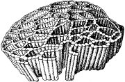 Halysitesw [von griech. halysis = Kette], (Fischer von Waldheim 1828), Kettenkoralle (= Catenipora de Lamarck 1816), Gattung tabulater Korallen ( vgl. Abb. ) aus der Familie Halysitidae Milne-Edwards & Haime 1851 in der Unterordnung Tabulata Milne-Edwards & Haime 1850; Corallum phaceloid; Polypare dünn, länglich, röhrenförmig, mit den Schmalseiten zusammengewachsen und kettenförmig angeordnet; Wand dicht, Epithek runzelig; 12 schwache Septen als Dornen ausgebildet, die gelegentlich fehlen, Querböden zahlreich. Zwischen normale Polypare schaltet sich jeweils ein Polypar mit kleinerem Querschnitt (Mikropolypar) ein, das eine größere Anzahl von Böden aufweist. Vorkommen: Mittel-Ordovizium bis Unter-Devon, weltweit, ausgenommen Südamerika. Paläontologie II.