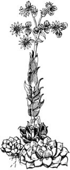 Hauswurzw, Dachwurz, Donnerwurz, Sempervivum, in den Alpen und den Gebirgen des Mittelmeergebiets bis Vorderasien verbreitete Gattungder Dickblattgewächse mit ca. 40 immergrünen, sukkulenten, dichte Polster bildenden Rosettenstauden oder –sträuchern ( vgl. Abb. ). Die in der Natur geschützte Echte Hauswurz oder Dachwurz (Sempervivum tectorum) wurde früher auf Dächern und Mauern gepflanzt, da die ihr nachgesagten magischen Eigenschaften gegen Blitze und Hexen schützen sollten. Ihre Blattrosetten bestehen aus dicken, spitz zulaufenden, oft rötlich angehauchten und am Rande kurz behaarten Blättern; die sternförmigen, hellroten Blüten stehen auf bis zu 50 cm hohen, dicht beblätterten Stengeln. Die in Deutschland potentiell bestandsgefährdete Spinnwebige Hauswurz oder Spinnweben-Hauswurz (Sempervivum arachnoideum;Alpenpflanzen ), deren Name sich auf die langen, spinnwebigen Haare, die sich von Blatt zu Blatt ziehen, bezieht, ist eine Alpenpflanze, die auf Felsköpfen oder in lückigen Silicatmagerrasen wächst; ebenfalls geschützt. Neben den genannten Hauswurzarten werden auch Kulturhybriden gern als Steingartenpflanzen gezogen. Polsterpflanzen; ä Dickblattgewächse .