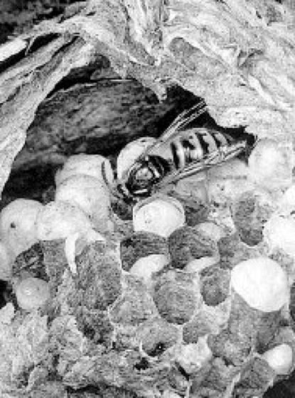 Hautflügler, Hymenoptera, Ordnungder Insekten mit über 100.000, nach neueren Zählungen sogar 200.000 bekannten Arten, davon in Mitteleuropa ca. 12.000 in etwa 50 Familien. Dabei entfallen allein auf die sog. „Parasitica“ (alle als Parasitoide lebenden Apocrita) über 125.000 Arten. Nach den Hochrechnungen zu erwartender Tierartenzahlen (10–30 Millionen Arten weltweit) dürfte ein beträchtlicher Teil auf die Hautflügler entfallen. Einige Arten können bis 6 cm lang werden, andere gehören mit 0,1 mm (Erzwespen [Chalcidoidea], Zwergwespen) zu den kleinsten Insekten überhaupt. Der Körper der Imagines ( ü vgl. Abb. 1 ) ist meist stark gepanzert; Behaarung und Farbe sind je nach Familie und Art sehr unterschiedlich. Einen großen Teil des Kopfes nehmen die länglich-ovalen, rundlichen oder nierenförmigen Komplexaugen ein, die bei vielen Familien hochentwickelt sind und aus bis zu 7500 Einzelaugen bestehen können. Daneben sind 3 Stirn-Ocellen die Regel; sie können bei ungeflügelten Formen reduziert sein. Ursprüngliche Hautflügler, wie die Pflanzenwespen, besitzen kauend-beißende Mundwerkzeuge; davon kann man den leckend-saugenden Typ der Bienen ableiten. Die vielgestaltigen Fühler (Antennen) sind Tast- und Riechorgane (mechanische Sinne, chemische Sinne). Sie unterscheiden sich je nach Familie in Länge, Form und Anzahl der Glieder beträchtlich. Im Halsbereich finden sich große Sklerite (Cervicalia; Nackenhaut), die mit den stark reduzierten Pleuren der Vorderbrust (Prothorax) verwachsen sind. Sie sind mit zahlreichen kleinen Haarsensillen bedeckt, mit denen die Kopfstellung genau registriert werden kann. Wie bei allen Insekten gliedert sich der Thorax in 3 Segmente mit je 1 Beinpaar; die beiden hinteren Segmente tragen je 1 Paar häutige, durchsichtige Flügel (Insektenflügel). Die Vorderflügel sind in der Regel größer und umgreifen mit den nach unten umgeschlagenen Hinterrändern eine Häkchenreihe am Vorderrand der Hinterflügel (Frenulum), so daß die Flügel im Flug verbunden sind (funktionelle Zweiflügeligkeit; ü vgl. Abb. 2 ). Das 1. Hinterleibssegment (Abdominalsegment; Abdomen) ist entweder mit seinem Tergit (dieses wird dann als Mittelsegment bezeichnet; Sternit reduziert; so bei den ursprünglichen Pflanzenwespen) oder gänzlich mit der Brust verschmolzen. In diesem Fall befindet sich eine starke Einschnürung zwischen dem 1. und 2. Hinterleibssegment. Dadurch ist dieses durch ein Stielchen von der Brust abgesetzt („Wespentaille“; Unterordnung Apocrita). Bei Ameisen wird entweder das gesamte 2. Hinterleibssegment tief eingeschnürt und als Petiolus bezeichnet, oder es wird zusätzlich auch noch das 3. Hinterleibssegment eingeschnürt. Dieses wird dann Postpetiolus genannt (so bei den Knotenameisen). Die hinteren Segmente sind bei vielen Familien auch verschmolzen, so daß die ursprünglich 9 Hinterleibssegmente nicht immer zu erkennen sind. Aus von ursprünglichen Extremitäten ableitbaren Anhängen der 8. und 9. Hinterleibssegmente ist der von den Geradflüglern ableitbare Eilegeapparat der Pflanzenwespen und der sog. Legimmen (Terebrantes; Terebra) entstanden, der bei den sog. Stechimmen (Apocrita) in einen kurzen Giftstachel umgewandelt ist. Dieser dient zur Lähmung von Beutetieren (z.B. Familie Grabwespen) oder nur sekundär als Wehrstachel (z.B. Ameisen, Honigbienen, Faltenwespen). Männliche Hautflügler können daher nicht stechen. Bei einigen sozialen Hautflüglern (unter den Ameisen die Schuppenameisen, unter den Bienen die Stachellosen Bienen [Meliponinae]) kann dieser Giftstachel reduziert sein. Einige Hautflügler (z.B. alle Ameisen, soziale Faltenwespen, unter den Bienen die Honigbienen, Hummeln, Stachellosen Bienen und viele Arten der Furchenbienen [Schmalbienen]) gehören zu den staatenbildenden Insekten und haben mit der Bildung von Kasten ein hohes Maß an Arbeitsteilung erreicht. Die Hautflügler pflanzen sich in der Regel zweigeschlechtlich fort, aber auch verschiedene Formen von Parthenogenese, z.B. bei Gallwespen, kommen vor. Bei Gallwespen findet sich ein jahreszeitlich gesteuerter Generationswechsel in Form von Heterogonie. Bei einigen Schlupfwespenartigen (z.B. Platygasteridae und Erzwespen) schlüpfen aus einem einzigen Ei Hunderte Larven, die durch Polyembryonie entstanden sind. Männchen entstehen durchwegs aus unbefruchteten Eiern (haplodiploide Geschlechtsbestimmung). Diese Form der Geschlechtsbestimmung ist wegen der daraus resultierenden ungleichen Verwandtschaftsgrade zwischen Müttern, Töchtern und Söhnen eine der wesentlichen Voraussetzungen für die so häufige Entstehung von sozialen Staaten (soziale Insekten). Alle Hautflügler durchlaufen eine holometabole Entwicklung (Holometabola, Metamorphose). Die Larven ( ü vgl. Abb. 3 ) der Pflanzenwespen entsprechen meist dem Typ der Afterraupe, die der Apocrita sind fußlose Maden. Die Larve spinnt sich zur Verpuppung meist in einen Kokon ein. Die Ernährung ist sehr vielgestaltig und besteht je nach Familie aus erbeuteten Insekten, Pflanzen, Nektar und Pollen. Auch Parasitismus im Sinne von parasitoider Entwicklung (die Larve bringt ihren Wirt am Ende ihrer Entwicklung um) kommt verbreitet vor. Das System der Hautflügler wird unterschiedlich gehandhabt. Stammesgeschichtlich betrachtet, sind die Pflanzenwespen nicht einheitlich (monophyletisch). Zu ihnen gehört außer den gesondert behandelten Familien ( ü vgl. Tab. ) auch die Familie Orussidae mit nur 2 Arten in Mitteleuropa, deren Larven ektoparasitisch an Prachtkäferlarven leben. Die alte Einteilung der Unterordnung Apocrita in Terebrantes (Legimmen, parasitische Hautflügler) und Aculeata (Stechimmen, Hautflügler mit Giftstachel) ist heute teilweise aufgegeben worden. Die Aculeata allein sind eine monophyletische Gruppe. Zu den Apocrita gehören auch ( ü vgl. Tab. ) einige kleinere Familien, so die den Goldwespen (Chrysididae) ähnelnden Diebswespen (Cleptidae), die in Mitteleuropa nur mit 2–4 Arten vertr