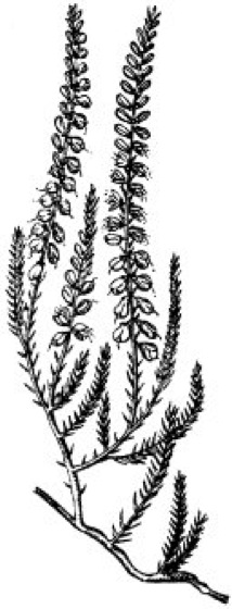 Heidekraut, Besenheide, Calluna, nur die Art Calluna vulgaris umfassende Gattung der Heidekrautgewächse. Über fast ganz Europa verbreiteter, 20–100 cm hoher, immergrüner Zwergstrauch mit niederliegenden Sprossen und kleinen, lineal-lanzettlichen, 4zeilig angeordneten Blättern an aufstrebenden, reichverästelten Zweigen ( vgl. Abb. ). Die in reichblütigen, einseitswendigen Trauben stehenden 4zähligen, bleibenden Blüten besitzen eine hellviolettrosa Blütenkrone und doppelt so lange, strohartige Kelchblätter gleicher Farbe. Im Spätsommer blühend, wächst Heidekraut gesellig in Heiden und Mooren, auf Magerweiden sowie in lichten Eichenwäldern und Kiefernwäldern, auf nährstoff- und basenarmen Böden. Es ist eine beliebte Bienenweide (Heidehonig, Honig) und wird zudem in zahlreichen weiß, rosa, rot oder purpurfarben blühenden Gartenformen kultiviert. Bodenzeiger; ä Heidekrautgewächse II , Europa IV .