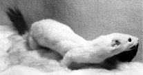 Hermelins, Großwiesel, Mustela erminea, zu den Mardern gehörendes kleines Landraubtier; Kopfrumpflänge 22–30 cm, Schwanzlänge 8–12 cm; Oberseite braun, Unterseite gelblich weiß; Winterfell weiß (Farbwechsel, Haarwechsel; vgl. Abb. ), Schwanzende jedoch stets schwarz. Das Hermelin ist weit über Europa (Ausnahme: Island), Asien und Nordamerika verbreitet, meidet aber jeweils die südlichen Teile (z.B. Mittelmeergebiet). Sein Lebensraum sind Wald- und Parklandschaften, oft in Wassernähe, auch am Rande von Siedlungen. Das hauptsächlich nachtaktive Hermelin erbeutet kleinere Wirbeltiere (vor allem Nagetiere), Vogeleier und Insekten. Der sichere Tötungsbiß in Hinterkopf oder Nacken des Beutetieres ist angeboren. In einem verborgenen Nest aus Pflanzenteilen, Haaren und Federn bringen Hermeline nach 7–12 Monaten Tragzeit (abhängig vom Zeitpunkt der Begattung, da stets Keimruhe bis Wintermitte) im Frühjahr 3–9 Junge zur Welt, deren Augen sich erst nach 5–6 Wochen öffnen. Schon während der über 6 Wochen dauernden Säugezeit erhalten junge Hermeline von der Mutter Fleischnahrung zugetragen. Untereinander im Spiel und als Jagdbegleiter der Mutter üben sie bereits das Beutefangen. Im Herbst löst sich die Familie wieder auf. – In der arktischen Tundra verbringt das Hermelin die Wintermonate vor der Kälte geschützt unter der Schneedecke, ebenso wie die Lemminge, die dann seine Hauptnahrung bilden. Neuere Beobachtungen lassen vermuten, daß das Hermelin als Beutegreifer damit eine wesentliche Rolle beim Zustandekommen der Lemming-Populationszyklen spielt. Europa XIII .