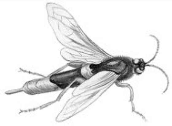 Holzwespen, Siricidae, Familieder Hautflügler mit ca. 100 Arten, davon 8 in Mitteleuropa. Die Holzwespen ( vgl. Abb. ) gehören mit bis zu 4 cm Körperlänge zu den größten Pflanzenwespen; kräftig und walzenförmig gebaut, dunkel oder schwarz-gelb gefärbt; Sexualdimorphismus in Größe und Färbung ist häufig. Das Weibchen besitzt einen den Hinterleib überragenden, kräftigen Legebohrer mit paarigen Sägeborsten, mit dem die Eier in Laub- und Nadelholz gelegt werden. Die Larve weicht vom Grundtyp der Afterraupe ab, die Gliedmaßen sind mehr oder weniger zurückgebildet. Mit Hilfe holzzersetzender Pilze (Pilzzucht), mit denen das Weibchen bei der Eiablage das Holz infiziert (Ektosymbiose), legt die Larve einen bis 40 cm langen Bohrgang an, in dem sie in mehreren Jahren heranwächst und sich verpuppt. Die geschlüpfte Holzwespe bohrt sich auf dem kürzesten Weg ins Freie. Dabei durchnagt sie auch die behandelte Oberfläche von verbautem Holz und kann dadurch beträchtlichen Schaden anrichten. So können sie sich durch Lack, Verputz, Stoffbezüge, Zinn- und Bleibeschichtungen von Holz bohren, das schon vor Jahren verarbeitet wurde. Bereits abgelagertes Holz wird nicht befallen. Bei uns kommt die Riesenholzwespe (Sirex gigas, Urocerus gigas) vor, die sich in Nadelgehölzen entwickelt und wie alle Holzwespen nicht stechen kann. Natürliche Feinde der Holzwespen sind vor allem Spechte und Schlupfwespen. ü Hautflügler I , Insekten II .