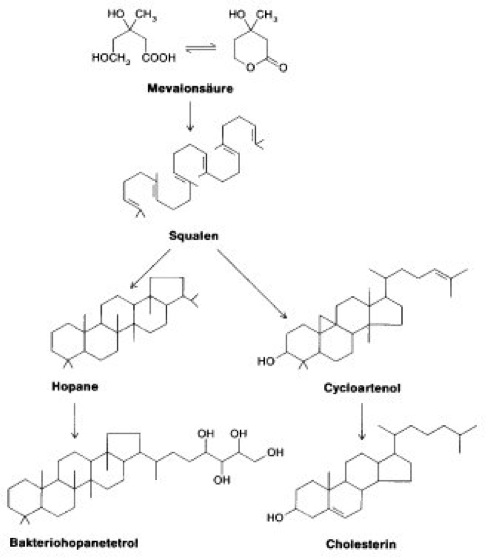 Schema der Biosynthese von Hopanoiden und Sterinen