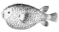 Igelfische, Diodontidae, Familieder Kugelfischverwandten mit 6 Gattungen und 19 Arten. Die marinen, vor allem in Korallenriffen lebenden, kugelfischähnlichen Igelfische haben am Körper kräftige, aufrichtbare oder kurze, nicht anlegbare Stacheln ( vgl. Abb. ); sie blasen sich bei Bedrohung durch Wasseraufnahme in den sehr dehnbaren Magen kugelförmig auf; die in jedem Kiefer miteinander zu einer Platte verschmolzenen Zähne bilden einen scharfen, papageiähnlichen Schnabel. Hierzu gehören der etwa 35 cm lange, weltweit verbreitete, auch in Gräben der Mangrovesümpfe heimische Igelfisch (Diodon holocanthus, Diodon holacanthus;Fische VIII ) und der häufige, bis 60 cm lange Stachelschwein-Igelfisch (Diodon hystrix) mit klappbaren Stacheln.