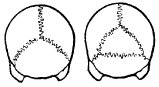 links Hinterhauptansicht eines menschlichen Schädels, rechts gleiche Ansicht mit Inkabein