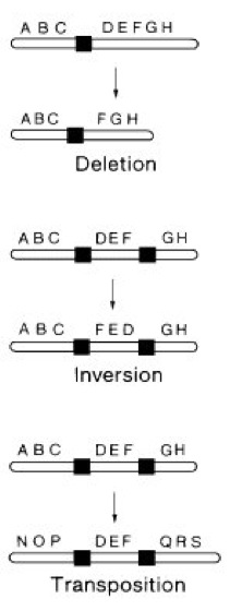 Auswirkungen der Integration von Insertionselementen (als schwarze Vierecke dargestellt) auf benachbarte Genomabschnitte