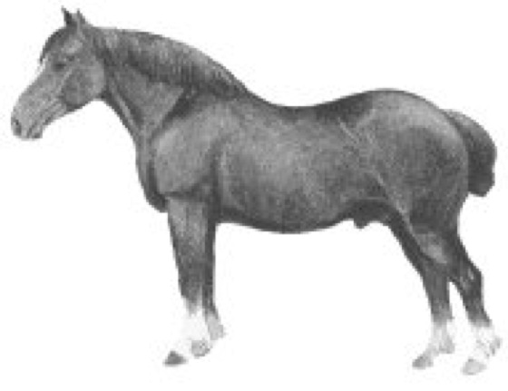 Kaltblut, Kaltblutpferde, Pferdeschläge, die sich vor allem durch robusteren Körperbau ( vgl. Abb. ), höheres Körpergewicht und ruhigeres Temperament von den Vollblut- und Halbblut-Pferden (Gegensatz) unterscheiden. Ihre Zucht begann mit der Verwendung des Pferds als Zugtier vor dem Wagen oder Pflug, etwa ab dem 12. Jahrhundert, vor allem aus belgischen Landrassen (Ardenner, Brabanter) und Norikern. Beispiele: Boulonnais, Clydesdale, Percheron, Belgisches, Mecklenburger, Niederländisches, Pinzgauer, Schleswiger, Süddeutsches Kaltblut. Kaltblutpferde haben vermutlich wesentliche Teile des Erbguts einer schon im Altertum ausgestorbenen Wildpferd-Unterart (Westpferd, Equus przewalskii robustus).
